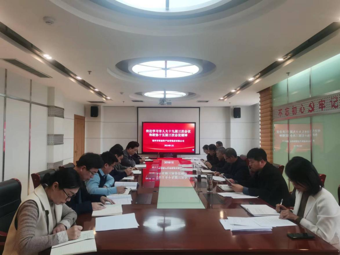 1月19日,市財鑫集團召開黨委(擴大)會議,傳達學習市人大十九屆三次會議和市政協十五屆三次會議精神,研究貫徹落實意見。黨委書記、董事長趙作勇主持會議,集團黨委委員和各部室公司負責人參會。